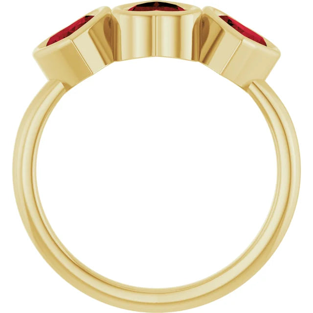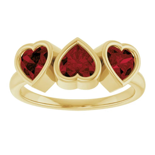 14K Yellow Natural Mozambique Garnet Three-Stone Heart Ring is a great reminder of sacrificial love. It reminds us to selflessly Love, love, love always.